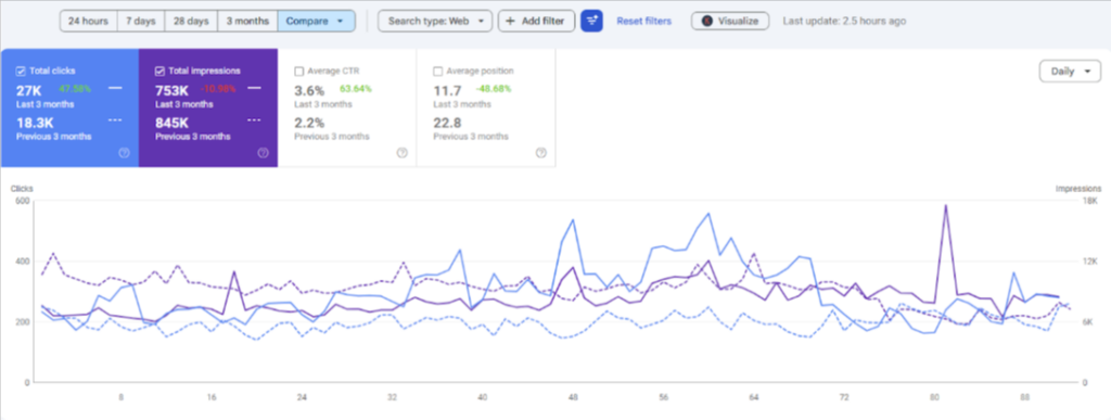 Our team implemented keyword mapping to separate category and product intent to prevent cannibalization. Product pages were optimized with unique descriptions, enhanced internal linking, image optimization, and structured data, including product, breadcrumb, and FAQ schema.